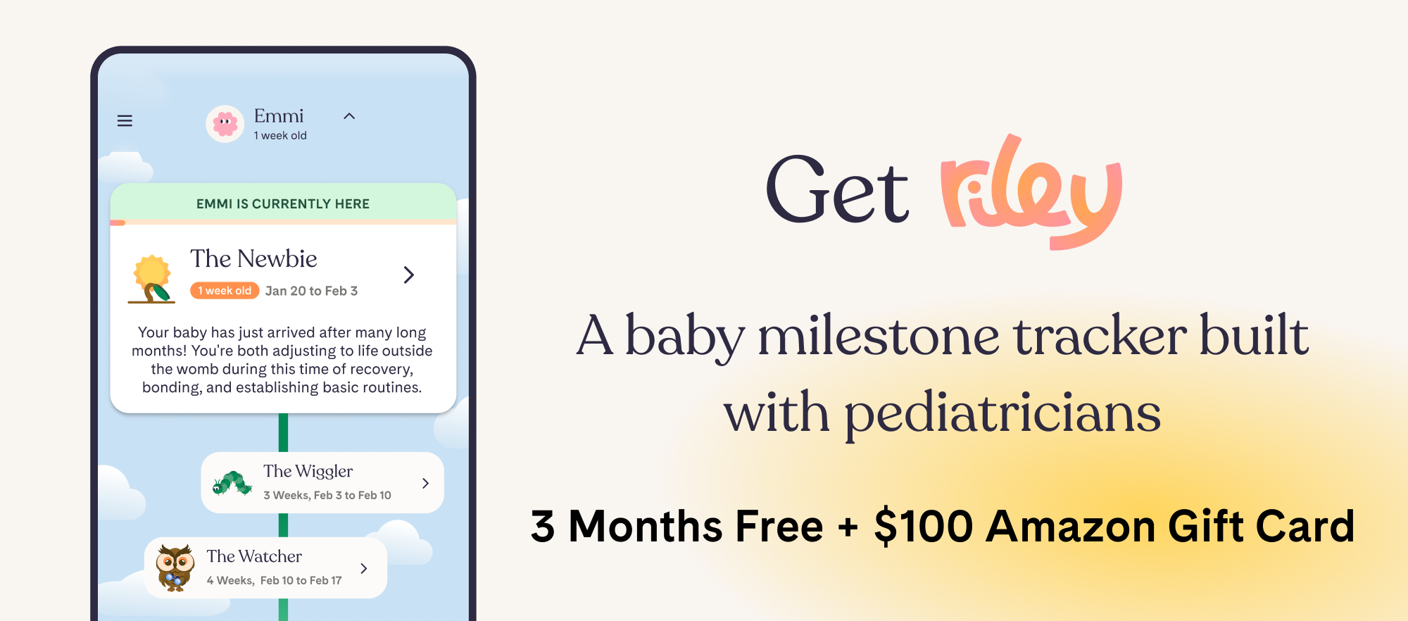 Built with pediatricians and rooted in science, Riley helps you understand what’s normal at every stage- from newborn to toddler- and feel confident in your baby’s development.